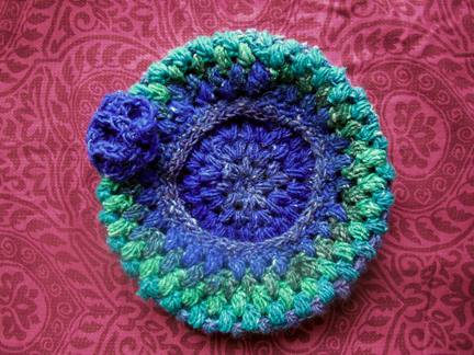 This beret is easier to make than it may look and requires only basic crochet skills.The self-striping yarn does all the jazzy work for ya.