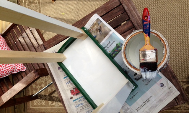 Now, put your table upside down and it will be very easy to paint the legs. I used a nice white as I like that wood & white look, especially for my cottage. Apply a second layer if required and if you have used a flat paint or simply want extra protection or sheen, also varnish the legs.