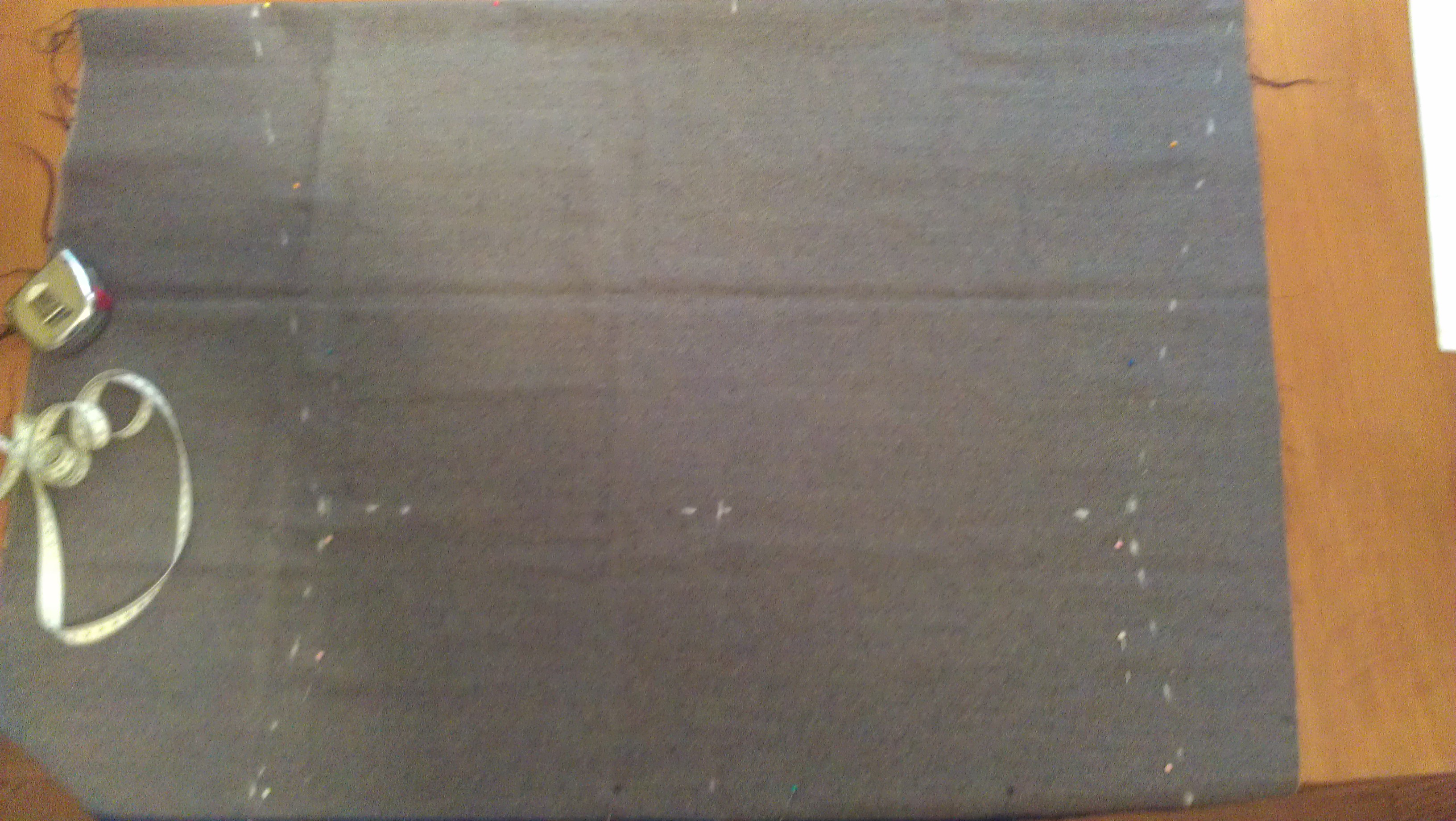 2. Fold material so that length is what you determined above (and fold is at top). Mark top width with chalk. Mark centre of top width and mark same at bottom. Use bottom mark as centre of your bottom width. Measure down to waist area and do same for it. Mark waist width, and bottom width in chalk. Connect the dots at the sides and cut out material.