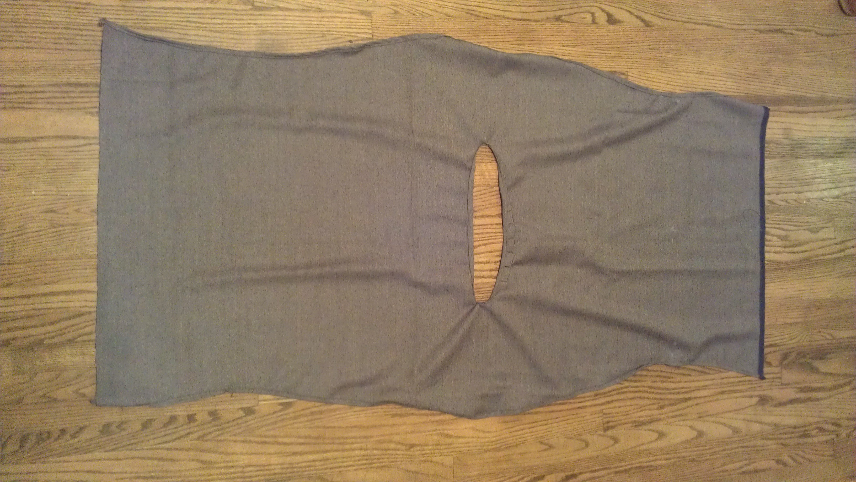 5. Sew front and back together from bottom to above waist.