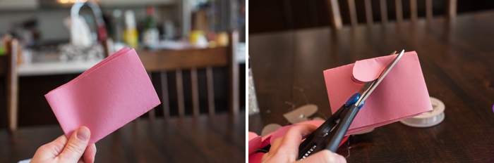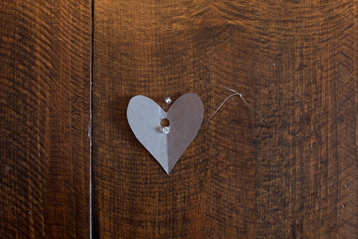 Step 1: fold paper in quarters and cut out hearts (I preferred to make different sizes, or you could go with the same size for all of them)