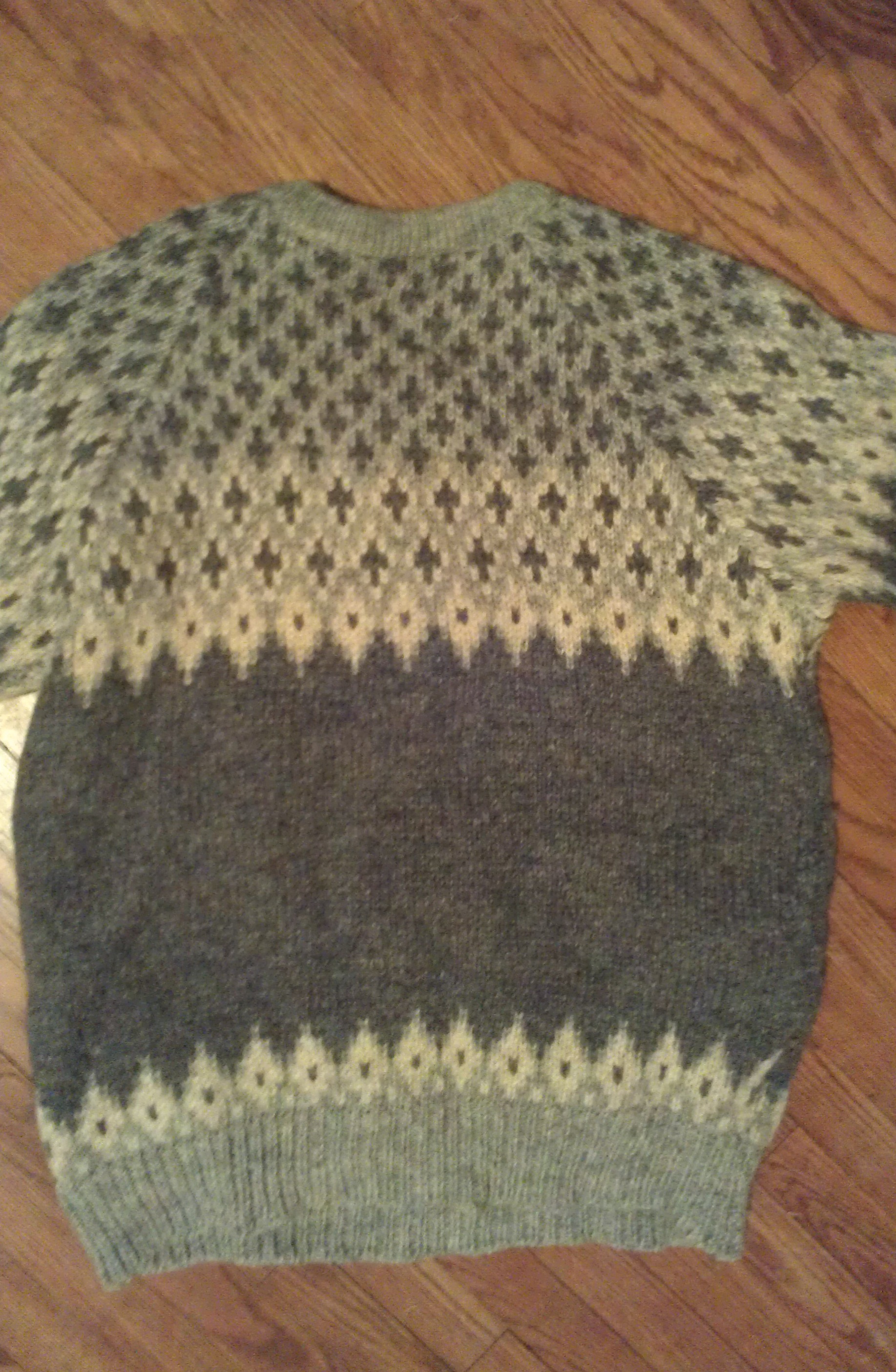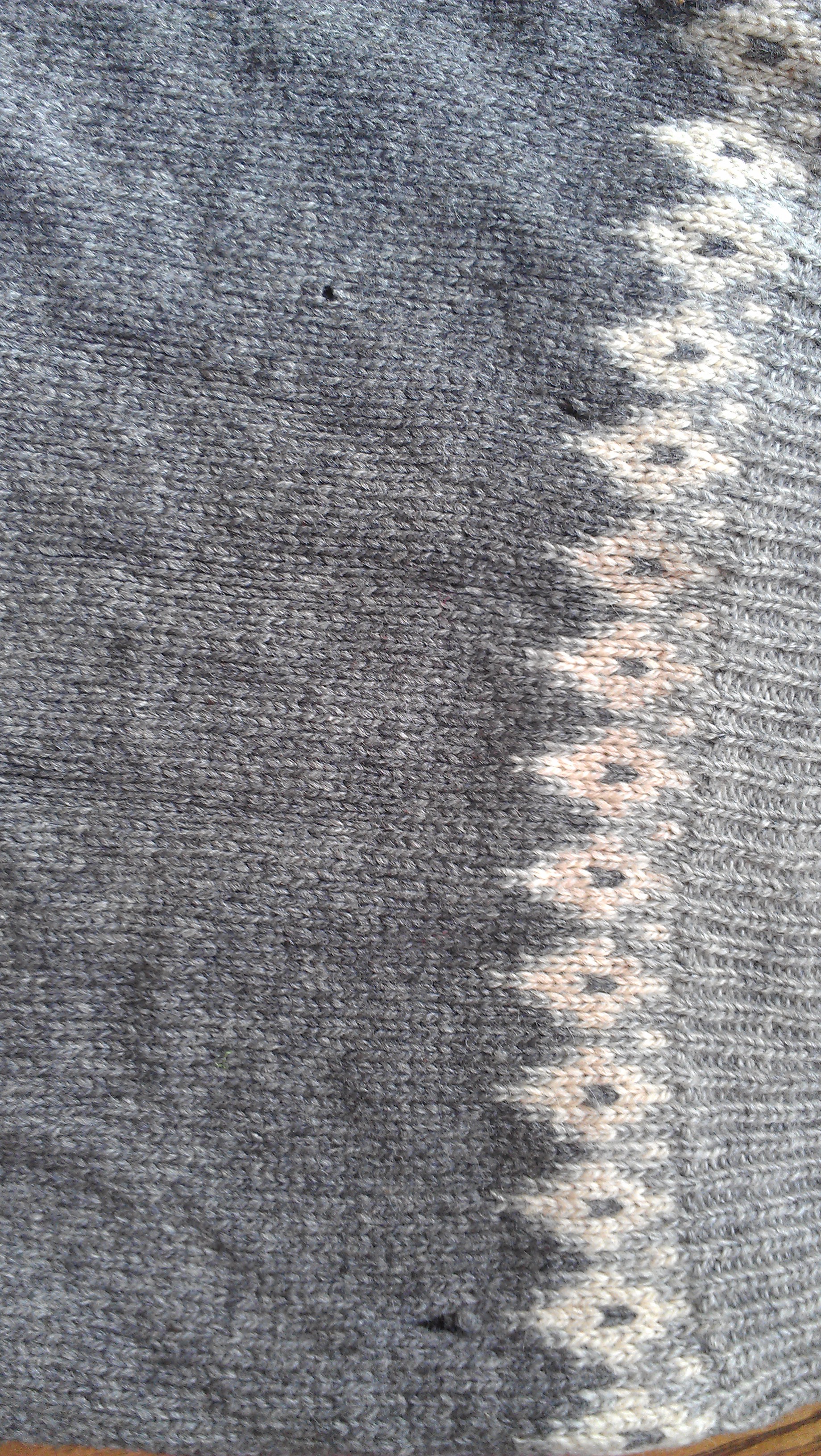 This quick-fix is not for dainty, thin-knit sweaters. There has to be a bit of bulk, because it’s not a completely pristine job.