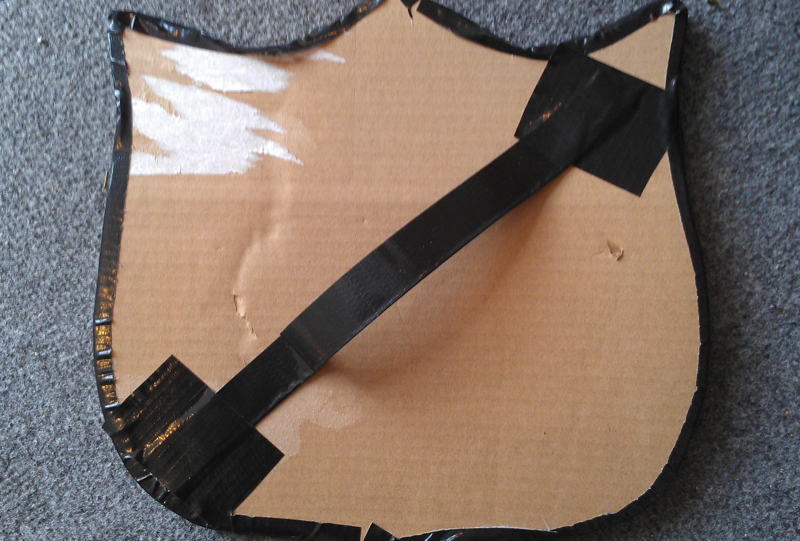 Take your duct tape and cover all the edges, for a “border” and fold a piece of duct tape in half and tape it to the back of the shield for a handle.
