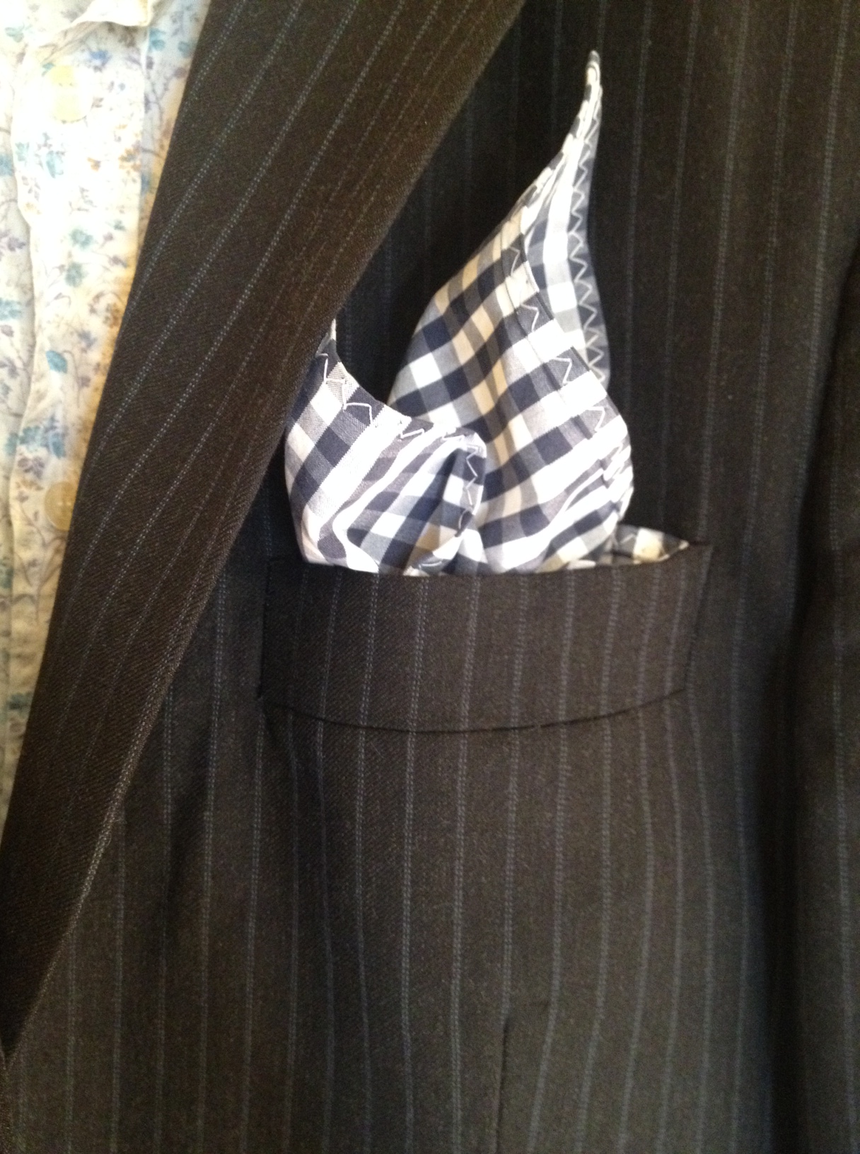 Sometimes you have a shirt that, for whatever reason (collar and cuff frays, etc.), cannot be passed along to Goodwill, but still has some life in the material. If your husband (brother, friend, neighbour) is a dandy like mine, they’ll appreciate it when you transform that garbage-bound shirt into a dashing pocket square.