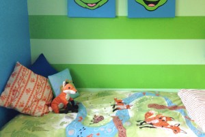 The Ninja Turtle artwork was also a DIY and was featured on The Motherboards previously. Have a look at Big Boy Room | Ninja Turtle Artwork.