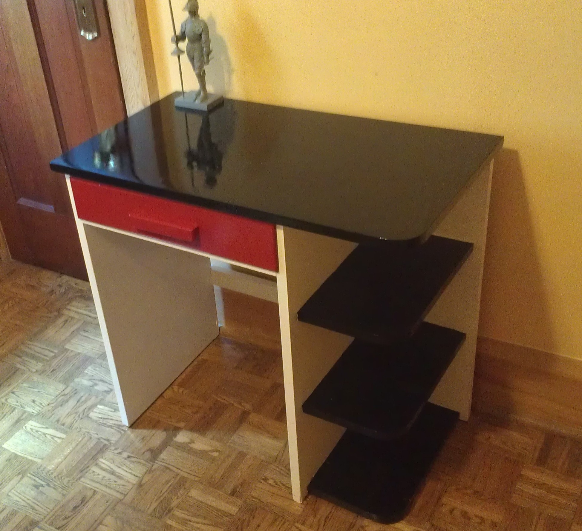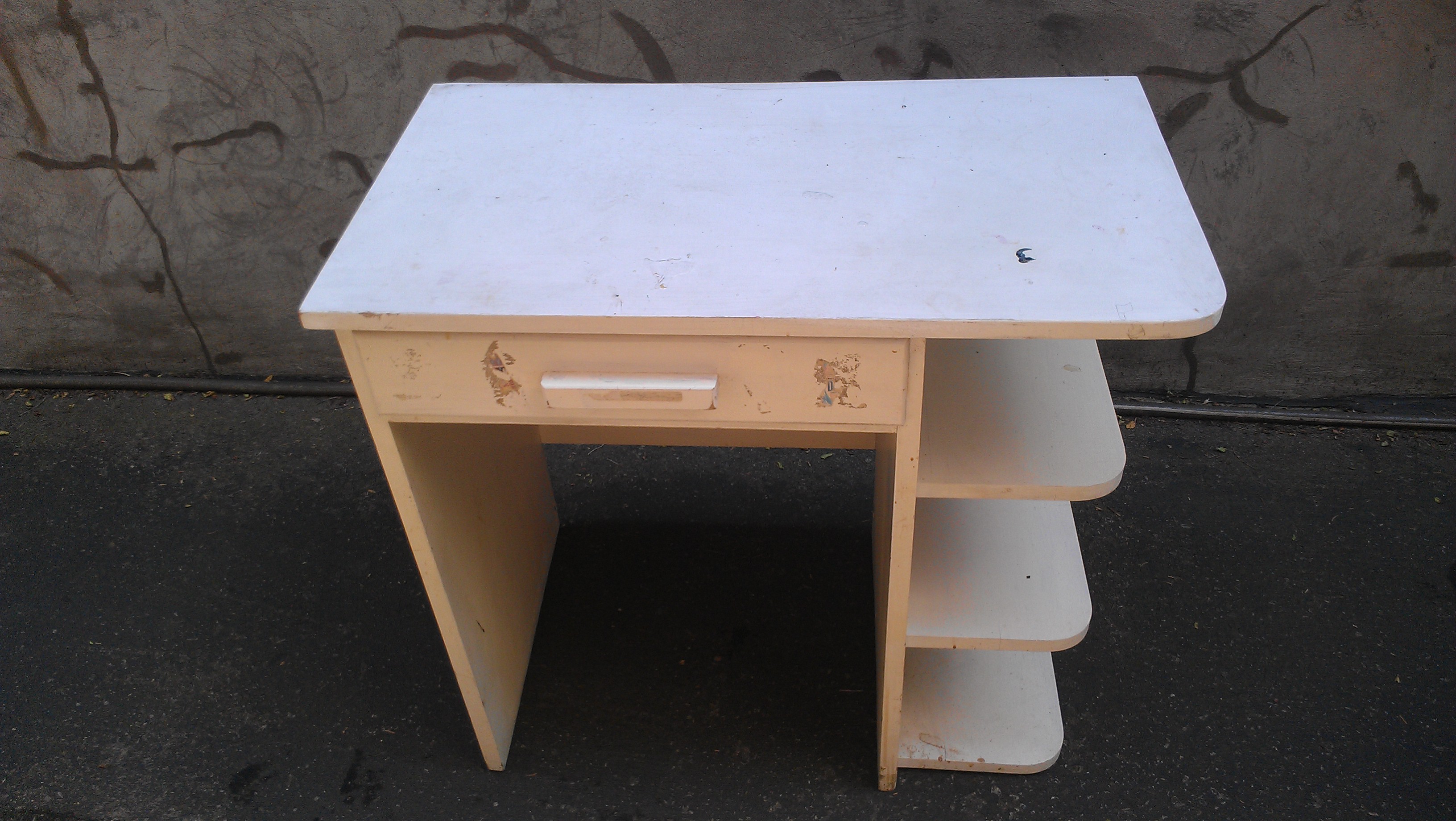 1) Scrape any pieces of wax, flappy stickers, etc. off the surface (and, in my case, inside the drawer) of your desk.