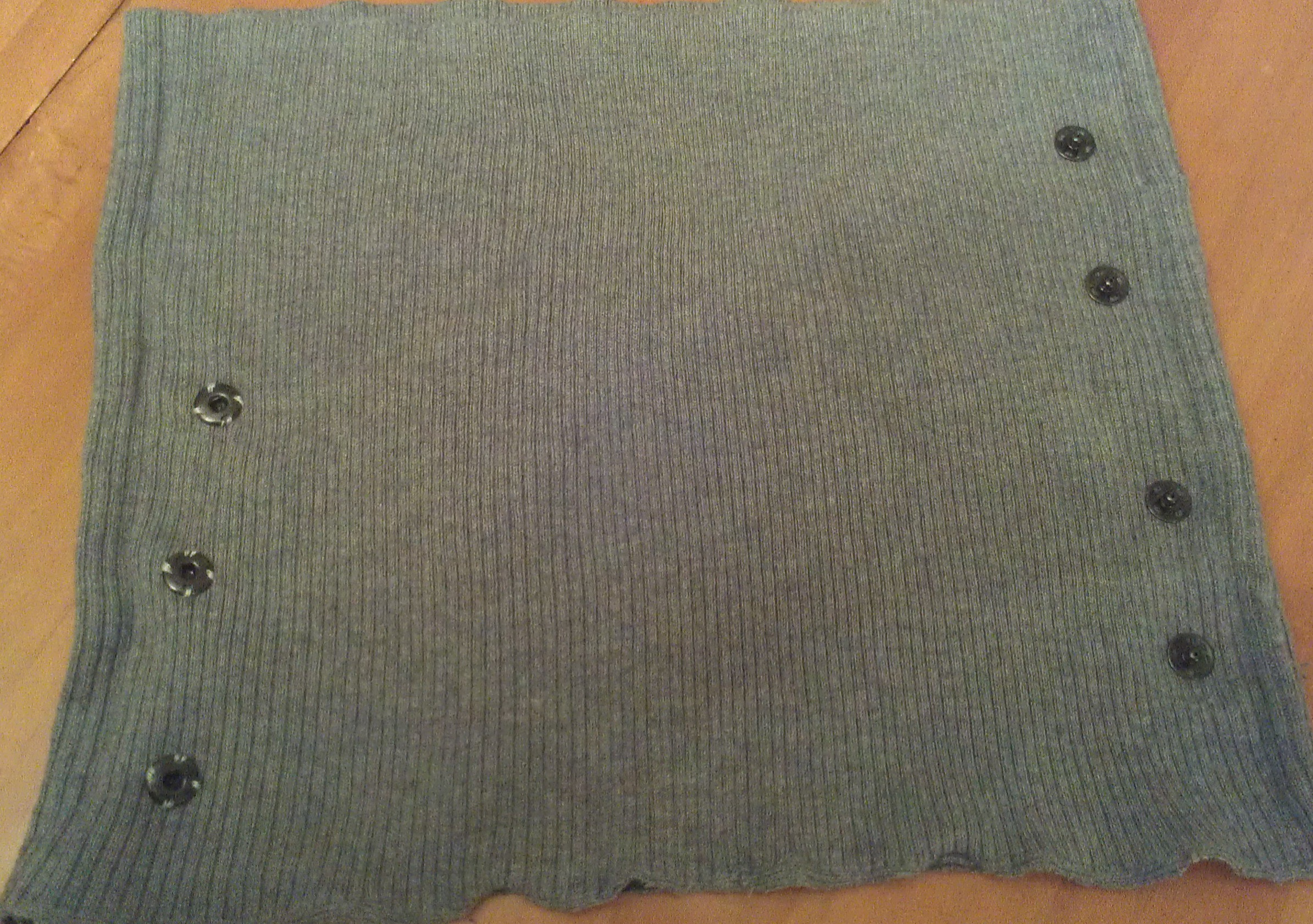 4. Sew snaps on the inside layer of the band, male up one side, female up the other side (make sure you measure where you’re placing them so that they snap together correctly).