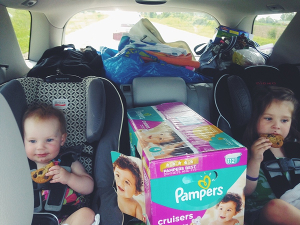 We ended up making them a house out of a diaper box, which we still need to finish decorating. The only photo I have is from our trip up north to cottage country two weeks ago. We couldn’t leave the caterpillars behind.
