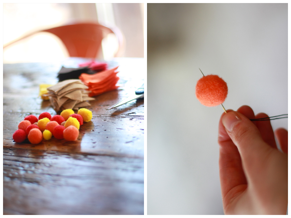 - Pompoms in various colours of tan, brown, red, yellow, orange (I found mine at Dollarama)