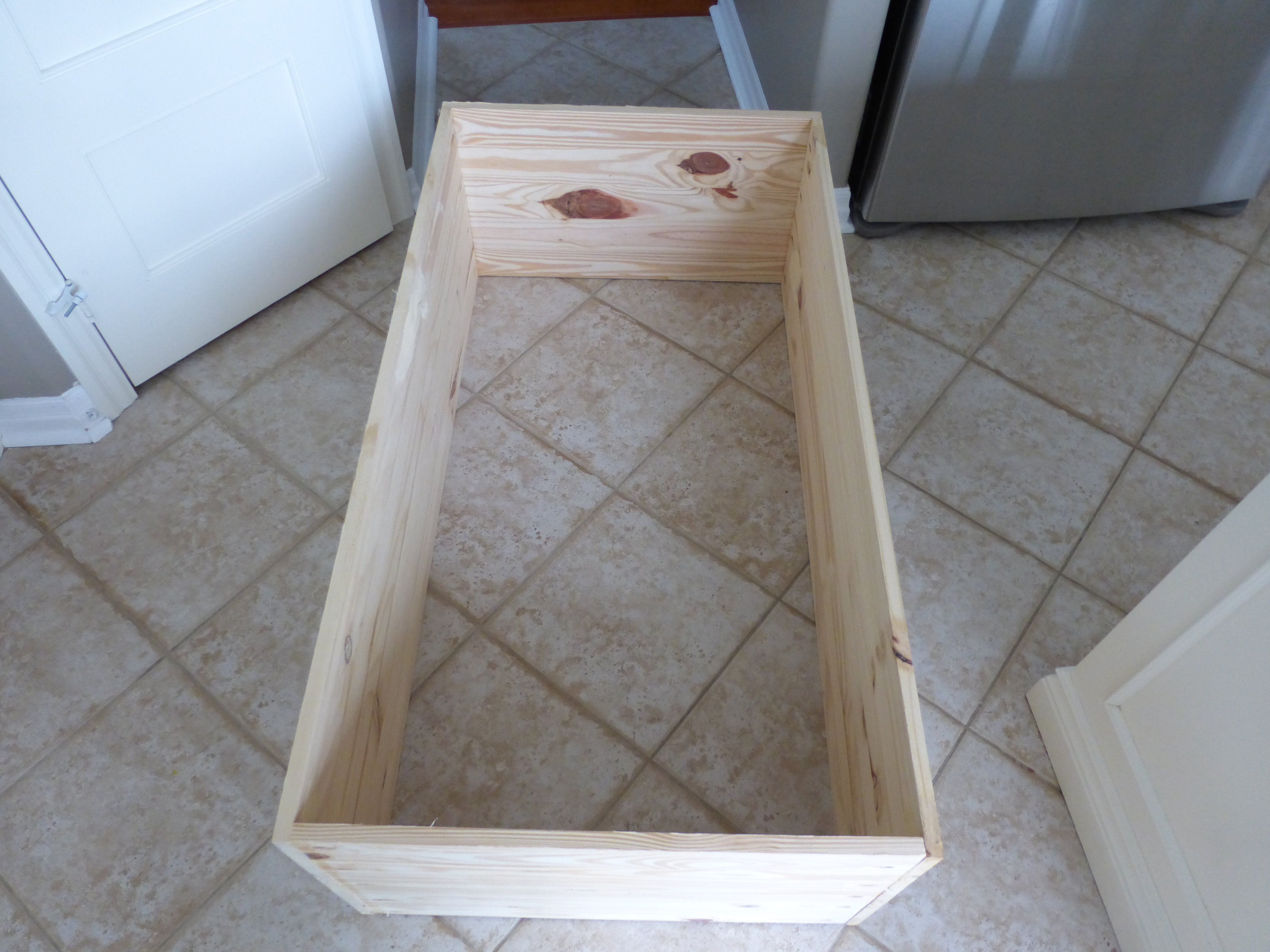 2) Using my Kreg Jig mini, I drilled 1 1/4” pocket holes along the top of the side boards (only top) at approx. every 5” (making sure there was a hole on each side about 1” from the end) and along both ends of the bottom pieces.