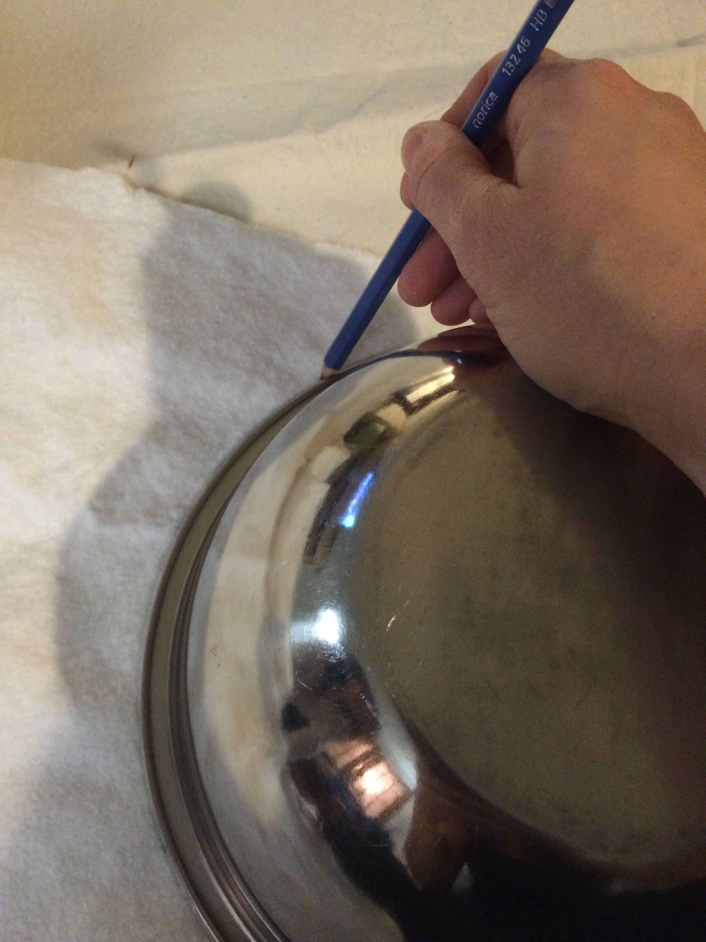 1. Choose a round object to trace. This will become the base of your basket. I used a metal kitchen bowl.