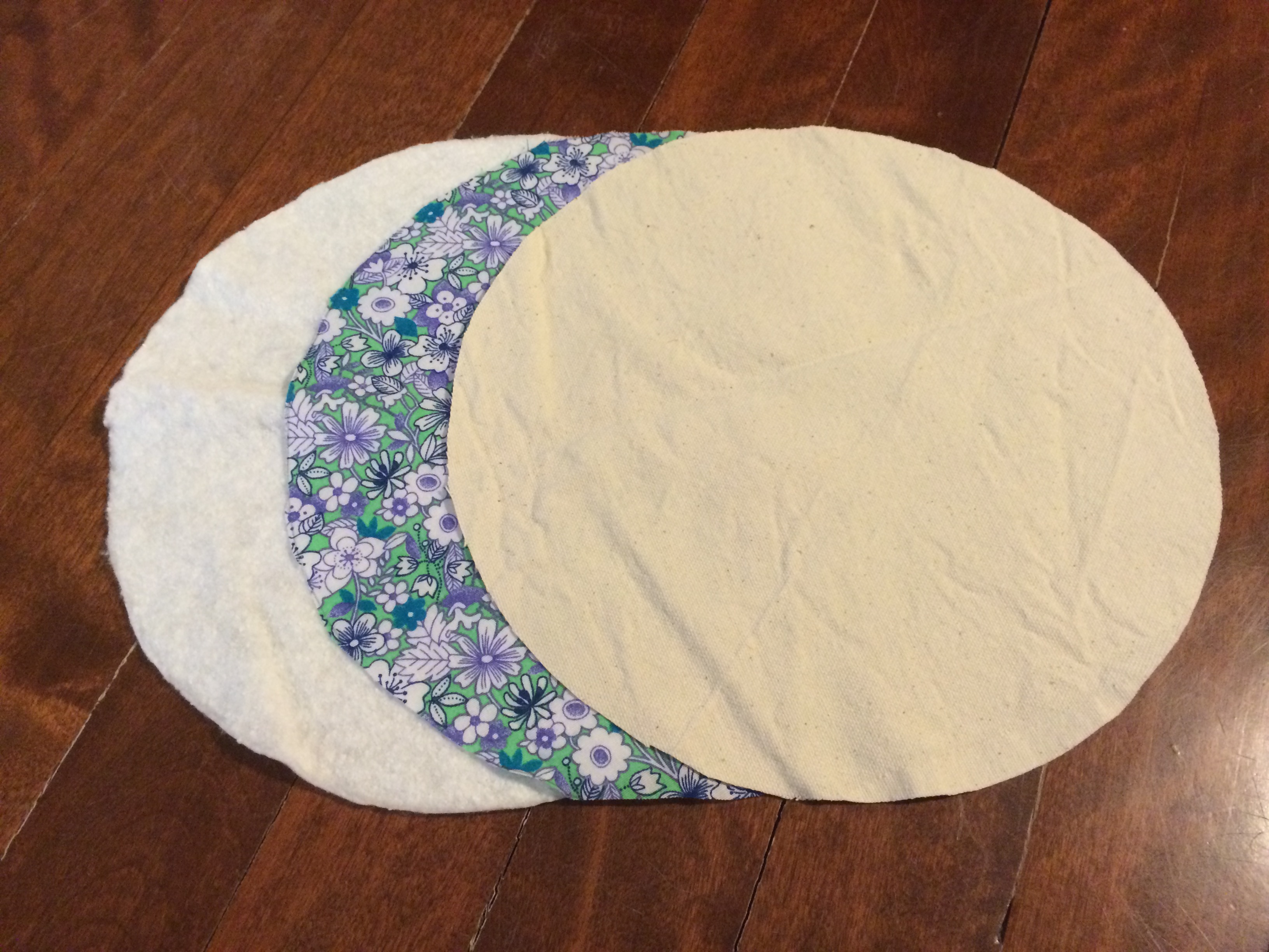2. Trace this round shape onto all three of your selected fabrics (outer fabric, inner fabric, and felt (or interfacing).