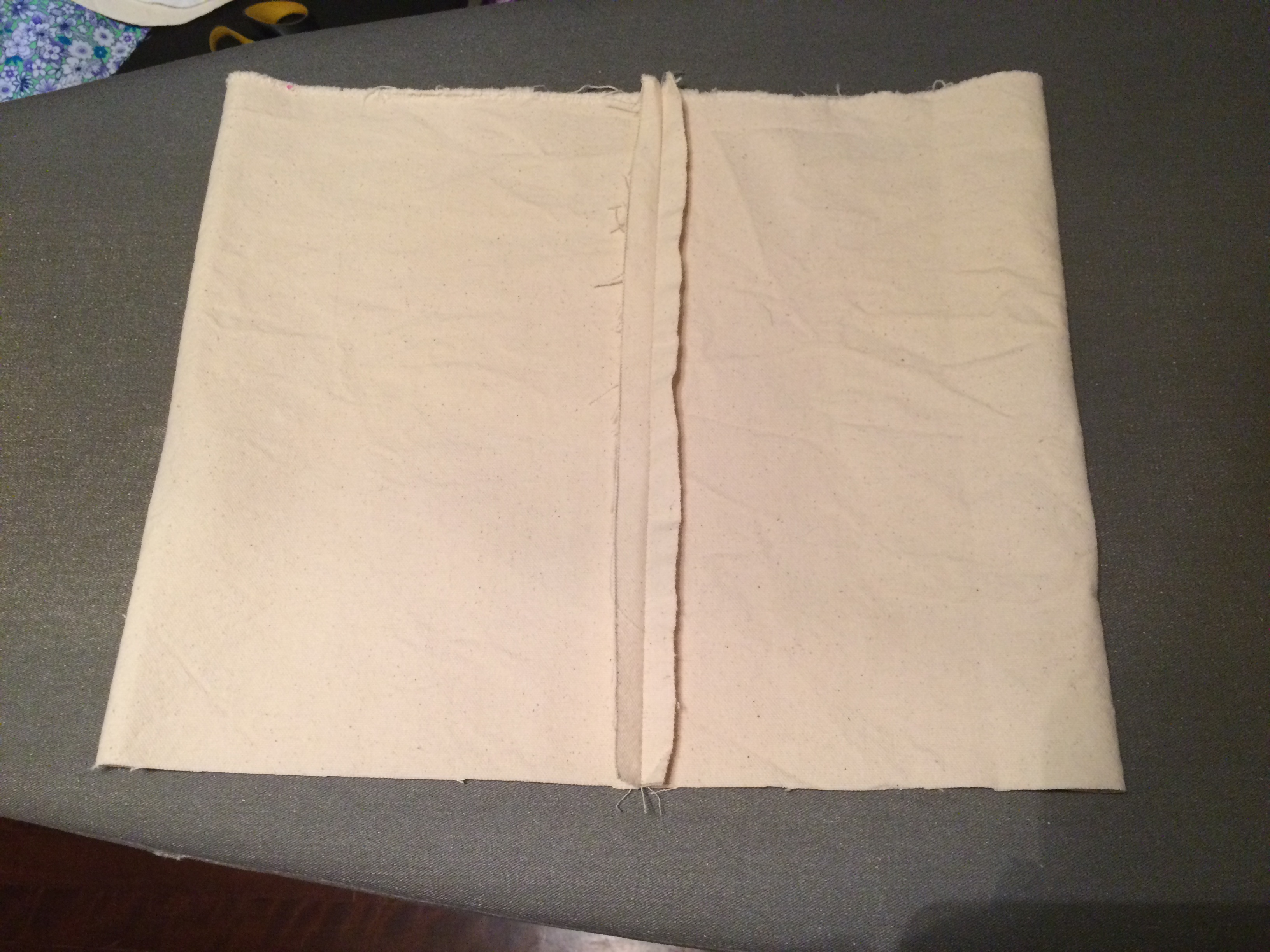22. Once this is ironed, fold your fabric over and pin the two folded edges together. Sew along the edge with a top stitch.