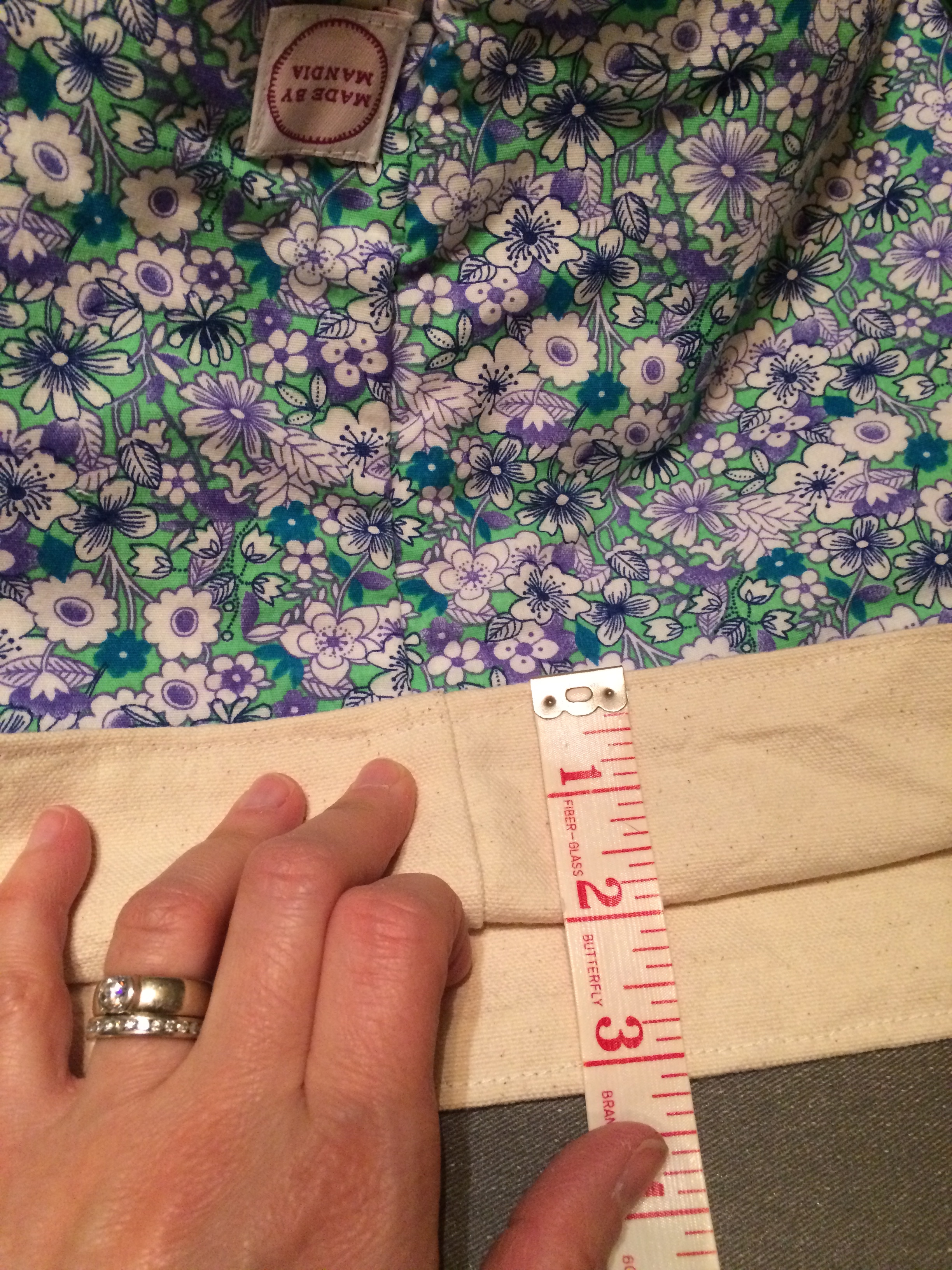 5. Decide how deep (or tall) you would like your basket to be. How much will it need to hold? What type of goodies will you be hunting for? I decided to go with a taller basket so that my little one can trail around all her favourite stuffed animals in the basket when Easter is over. It’s a little big for egg hunting, unless the Easter Bunny is extra generous this year. I cut my fabric 12 inches tall to allow for ½ inch seam allowances, as well as some fabric to fold over at the top (more on that later). So my basket side fabric pieces are 29 inches long, and 12 inches tall.