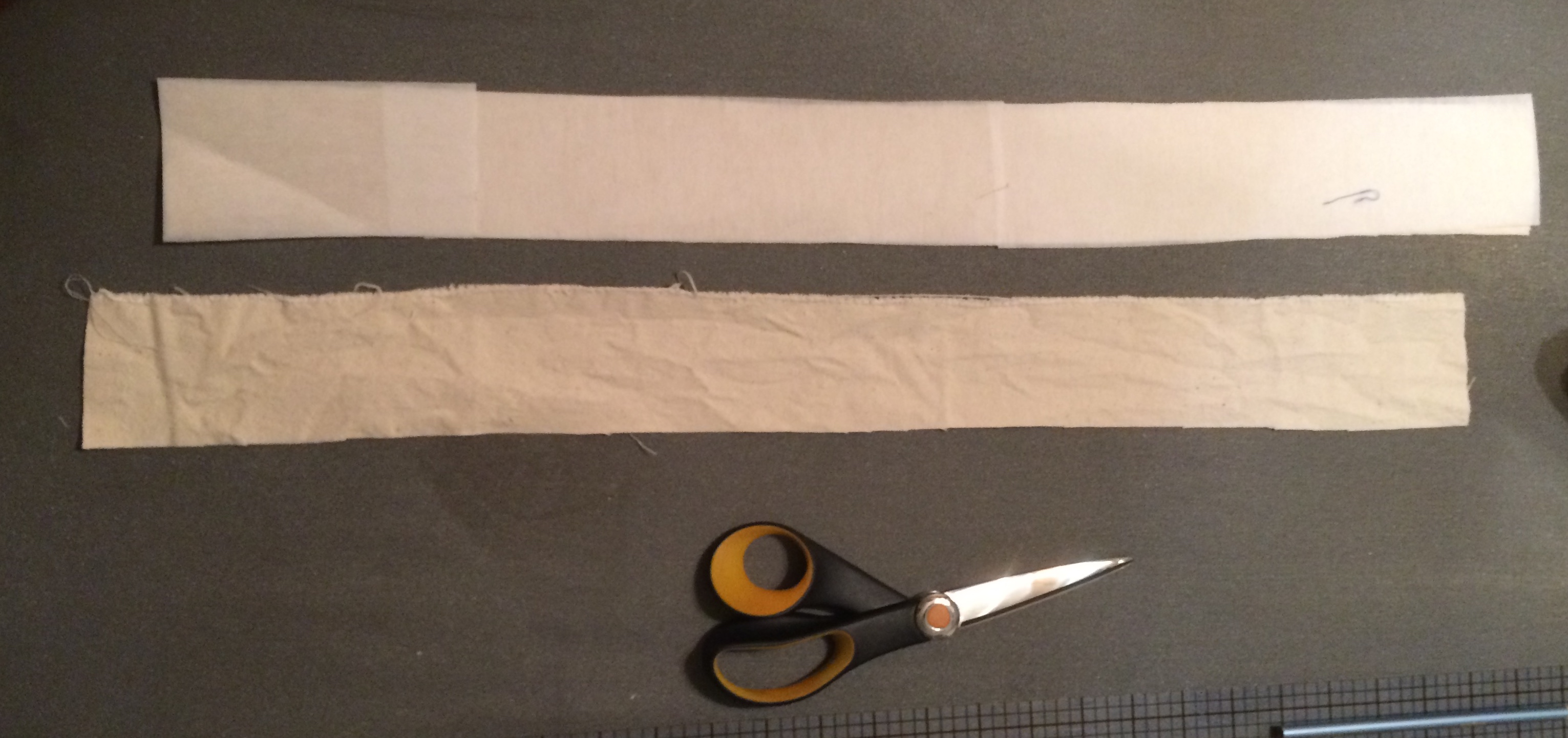 19. Measure and cut two long strips of fabric. I made each strip for the handle 24 inches long, and 2.5 inches wide. Cut the same dimensions of felt or interfacing for these pieces, as well.
