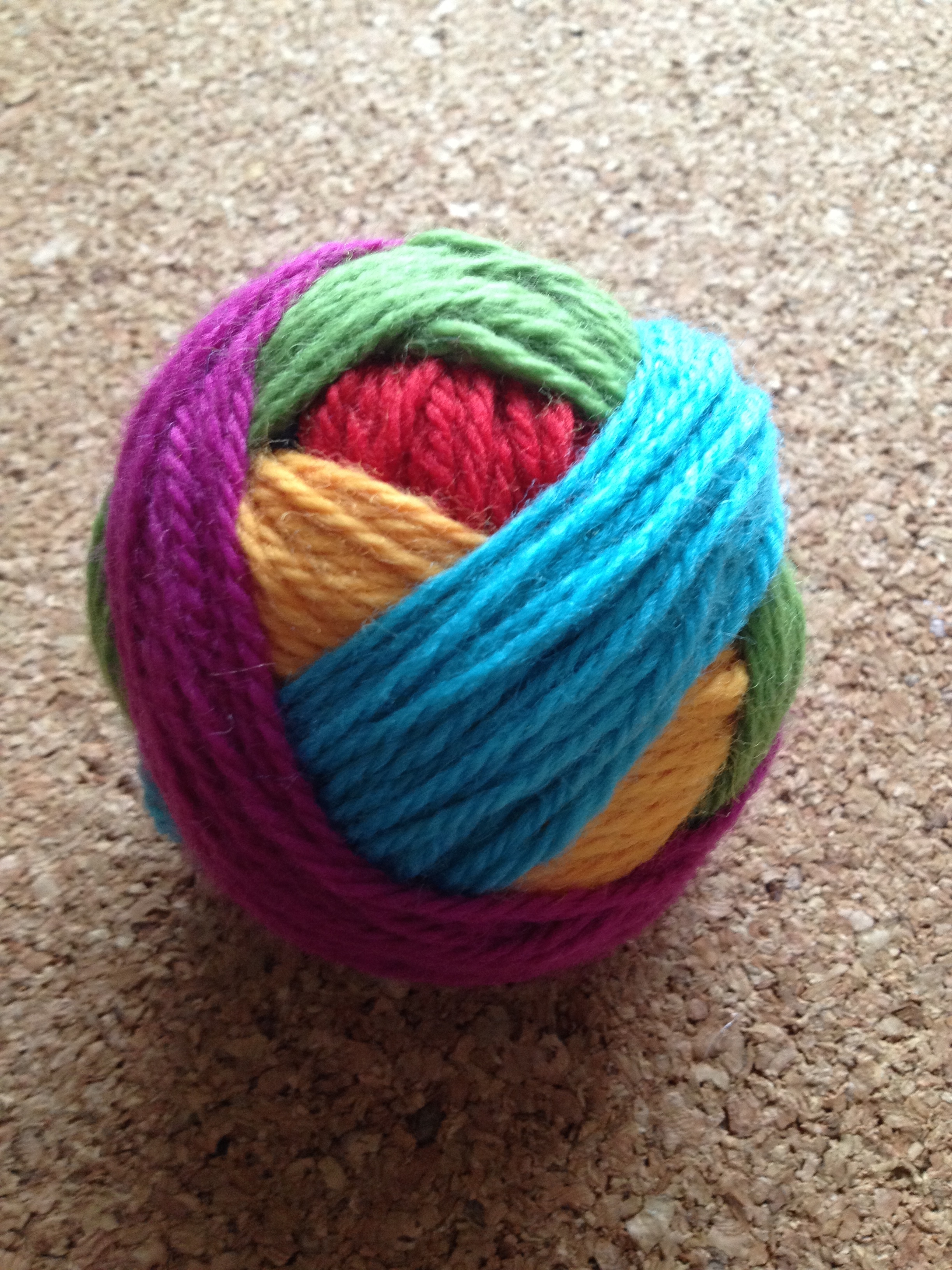 This format is great for most projects, but we want nice round spheres. Because I’m an avid knitter, I have a stash of yarn and lot of leftover from previous projects. This is great project to use up those ends! Whether you’re starting from a nice fresh ball or have a heap of scraps like me, it’s time to start winding!