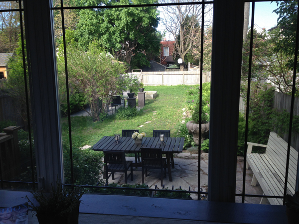 I also had to take the outside in mind. My kitchen nook overlooks the backyard and the landscaping I have done there has an impact on the look and feel of the kitchen nook. The dark gray furniture there now really compliments the scheme indoors (or visa versa).
