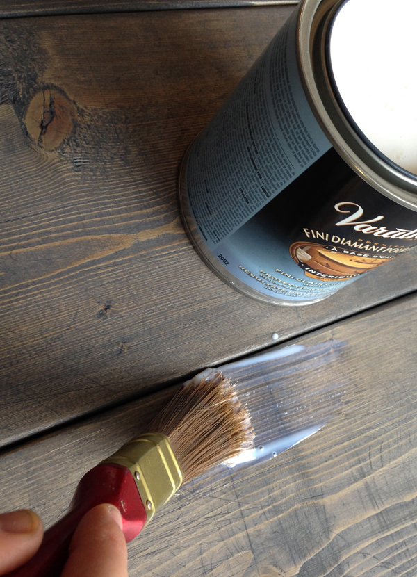 The final touch was 4 layers of a sheer satin top layer. I wanted to have a matte finish but it is simply not practical to do so with a high-use table like this. The simple rule is that the shinier the finish, the stronger. A good compromise is using a satin finish. It really is not shiny and it is much stronger then matte. I do recommend multiple layers to ensure your wood is well protected and can stand some abuse. Who needs pretty furniture that’s pretty for one month only? Note the satin varnish looks milky when applied but dries completely clear. I now actually really like my satin finish.