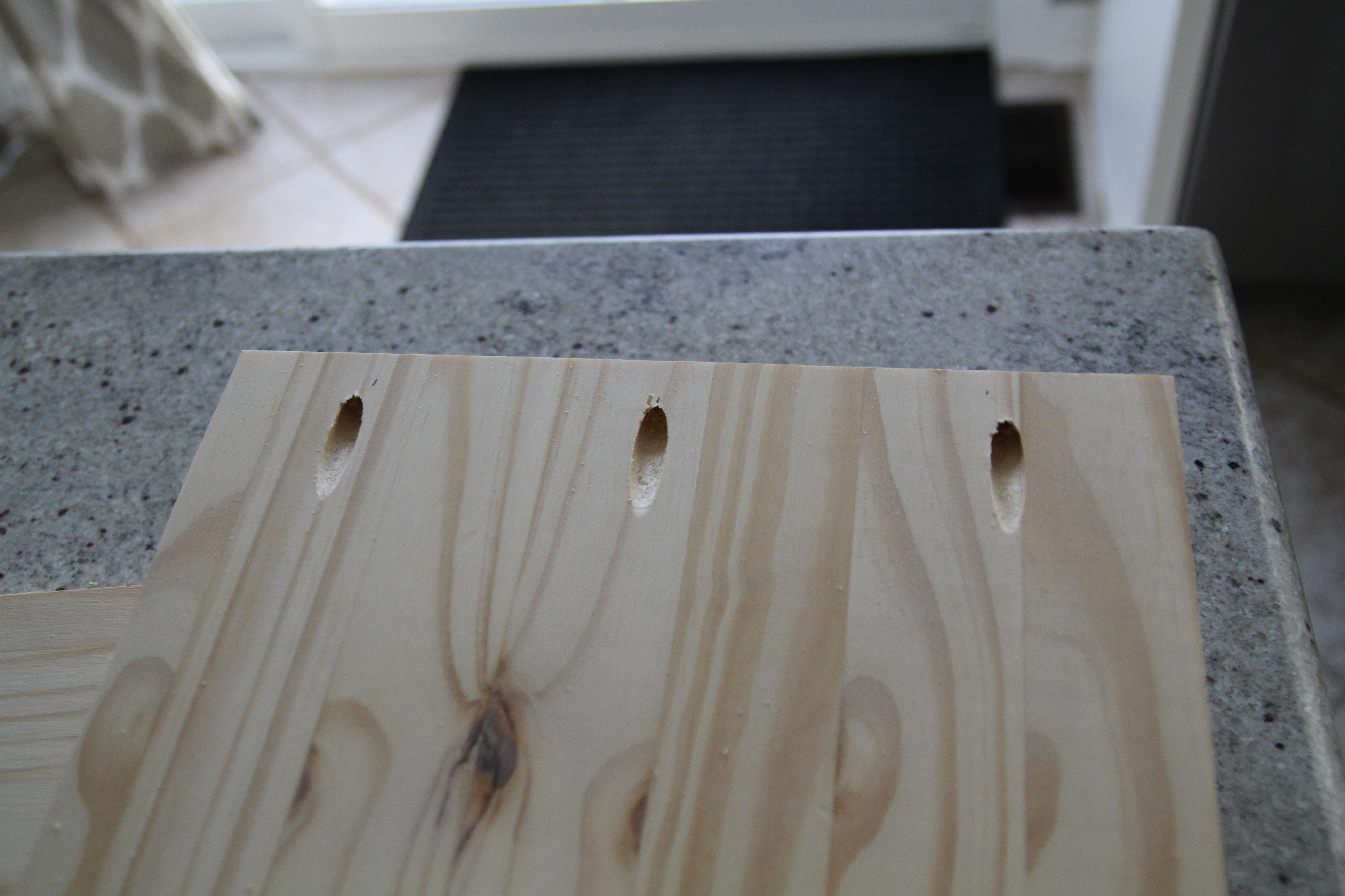 2. Drill three kreg jig holes on each end of all three horizontal pieces (the floors).