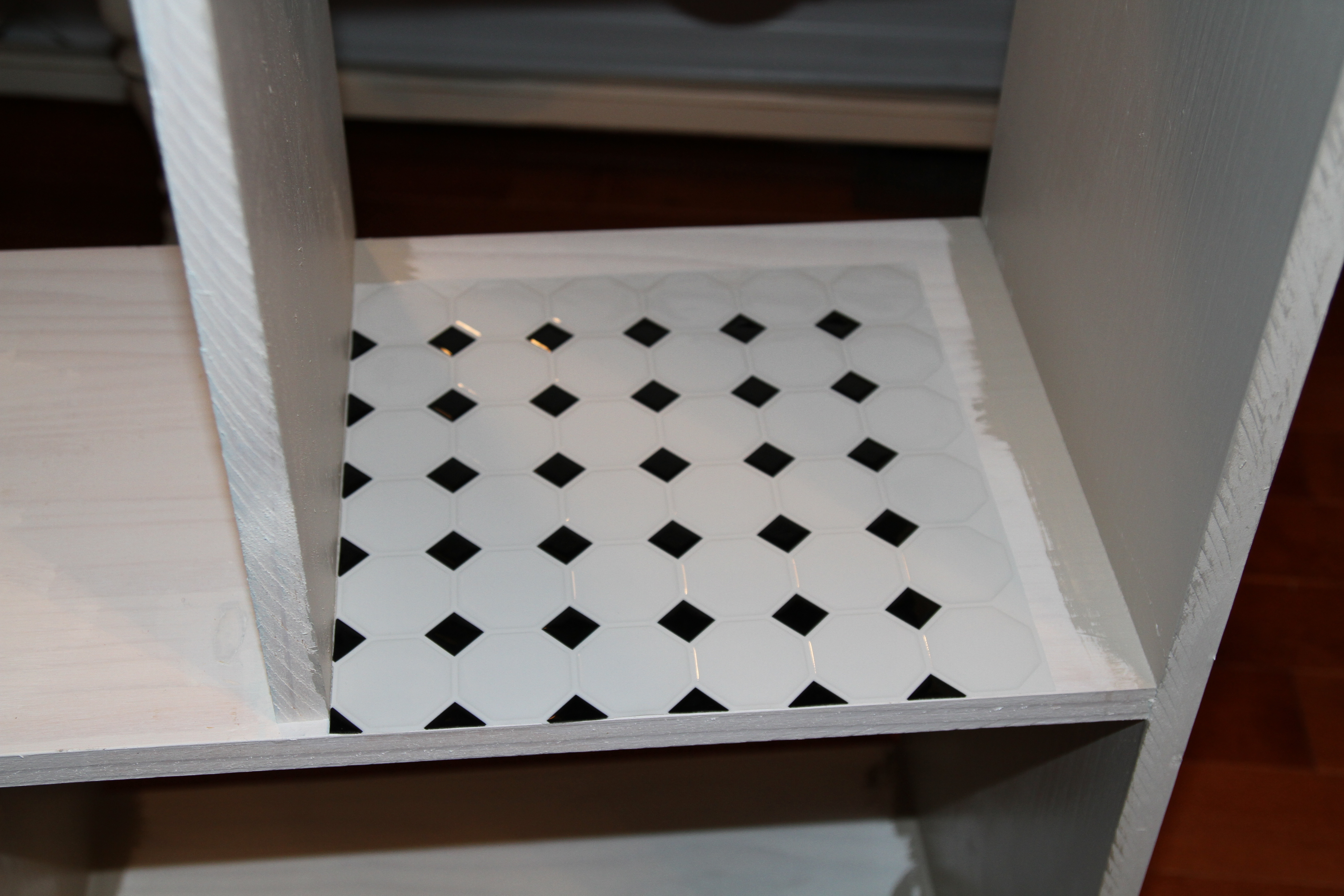 7. Install “wooden floors” and tile floors – cut to desired measurements of the rooms and install **I brushed on glue and stuck down, and places heavy books to ensure it dried flat.
