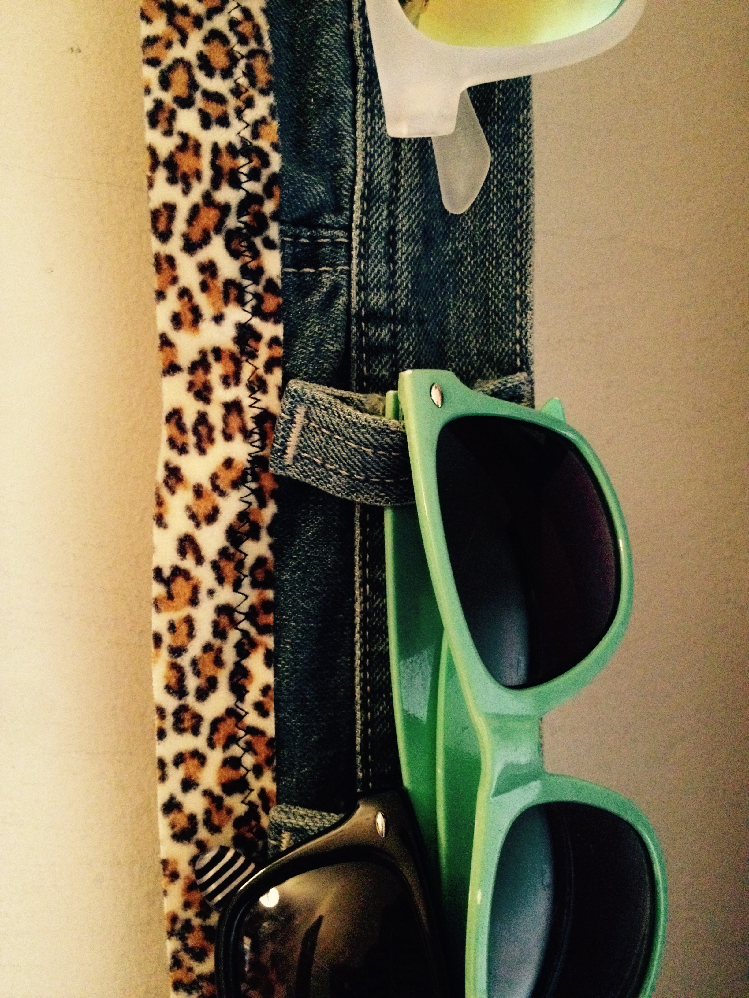 3. I used the buttonhole to hang on a hook by the door and inserted an arm of the sunglasses into each loop.