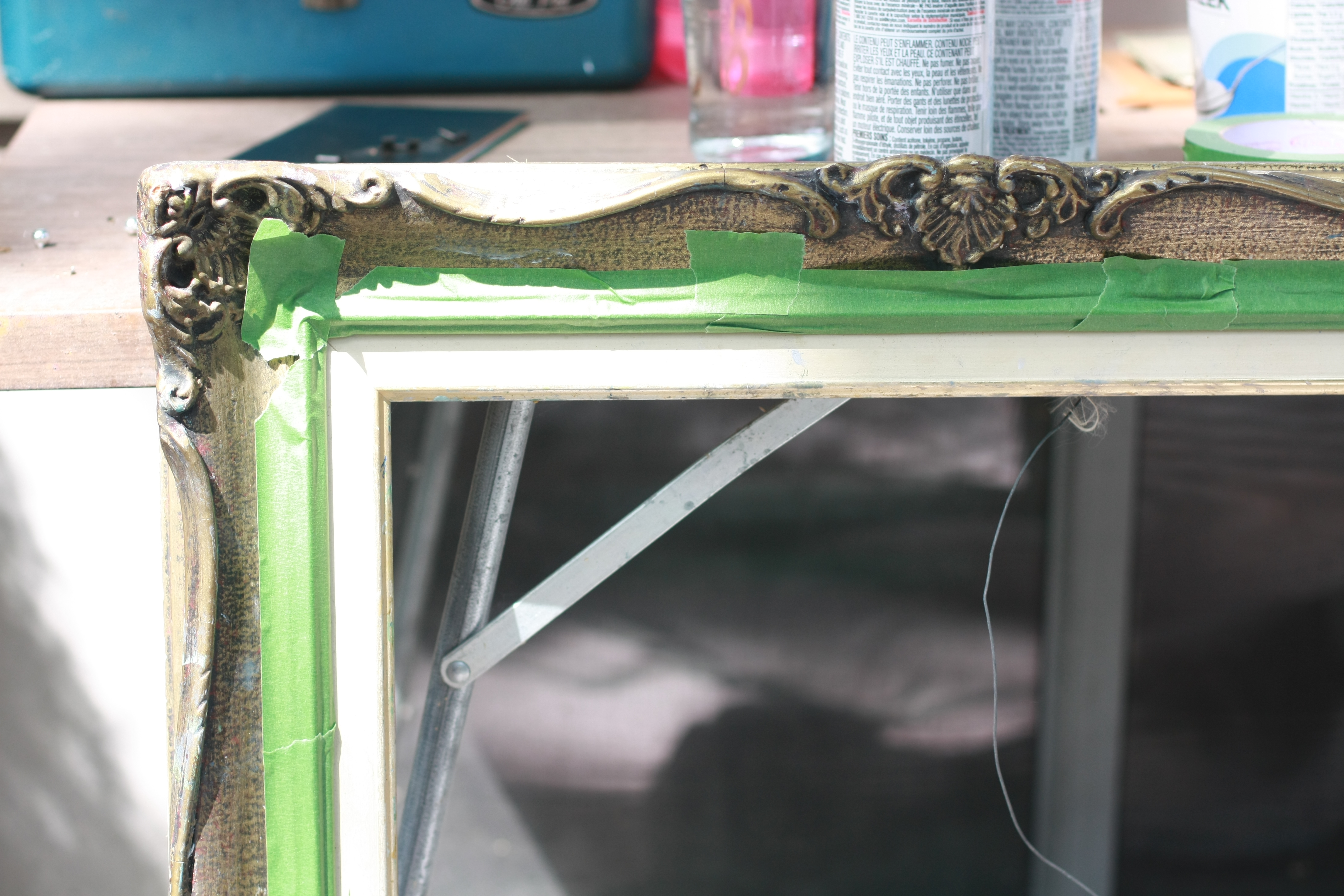 The next step was deciding how I wanted the colour to look — in this case, I decided to create a one inch border of the gold on the inside of the frame edge. I covered all around that area with painter’s tape and went to town. The key to successful spray painting is patience (so hard!). Once I’d finished the gold edge, I left it dry for several hours — I’d recommend overnight if you can wait.