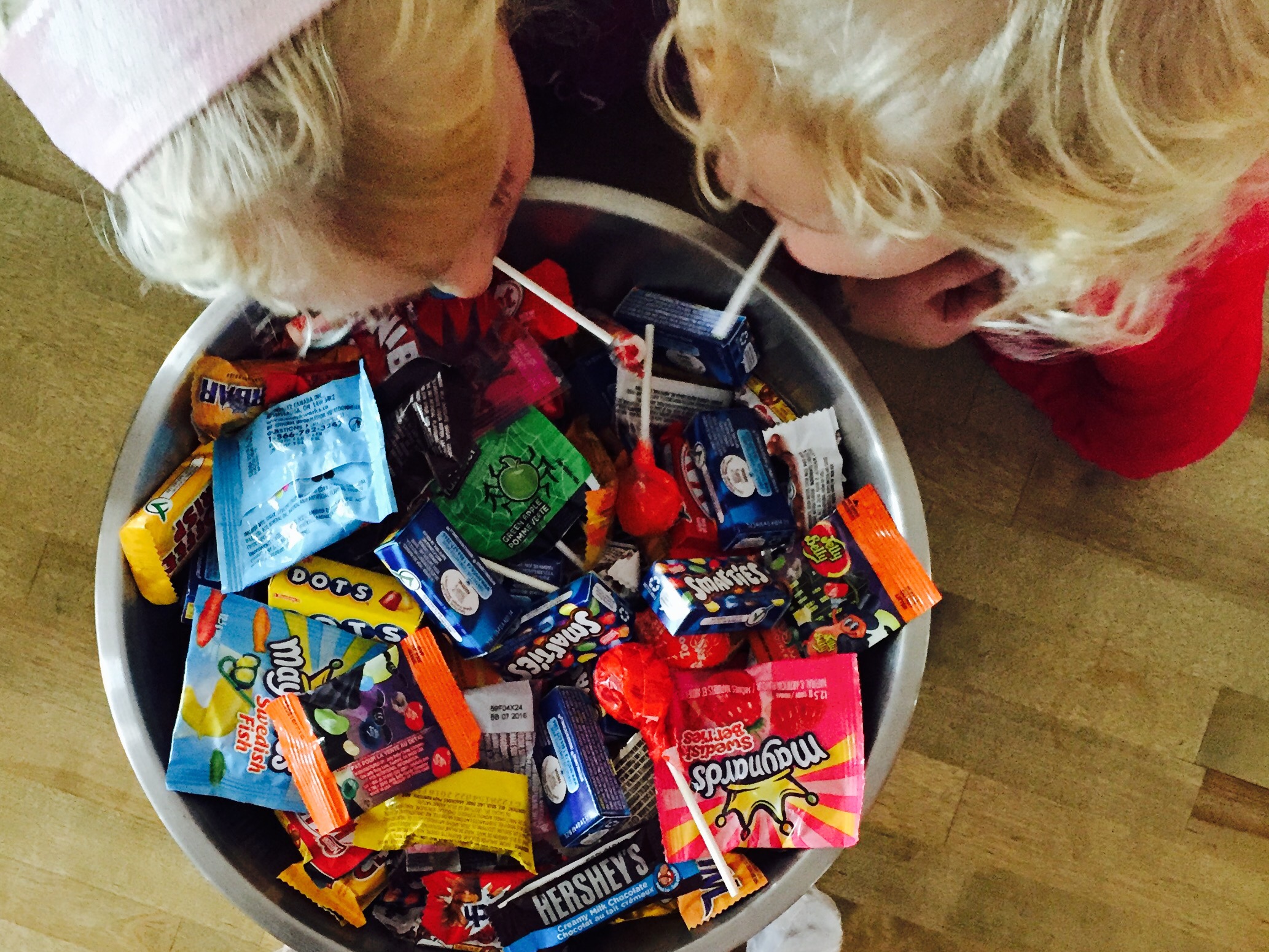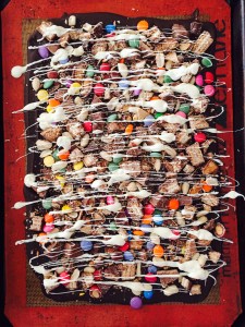 - About 20 packages Halloween candy – the chocolate ones work best (bars, M&Ms, Smarties), roughly chopped up