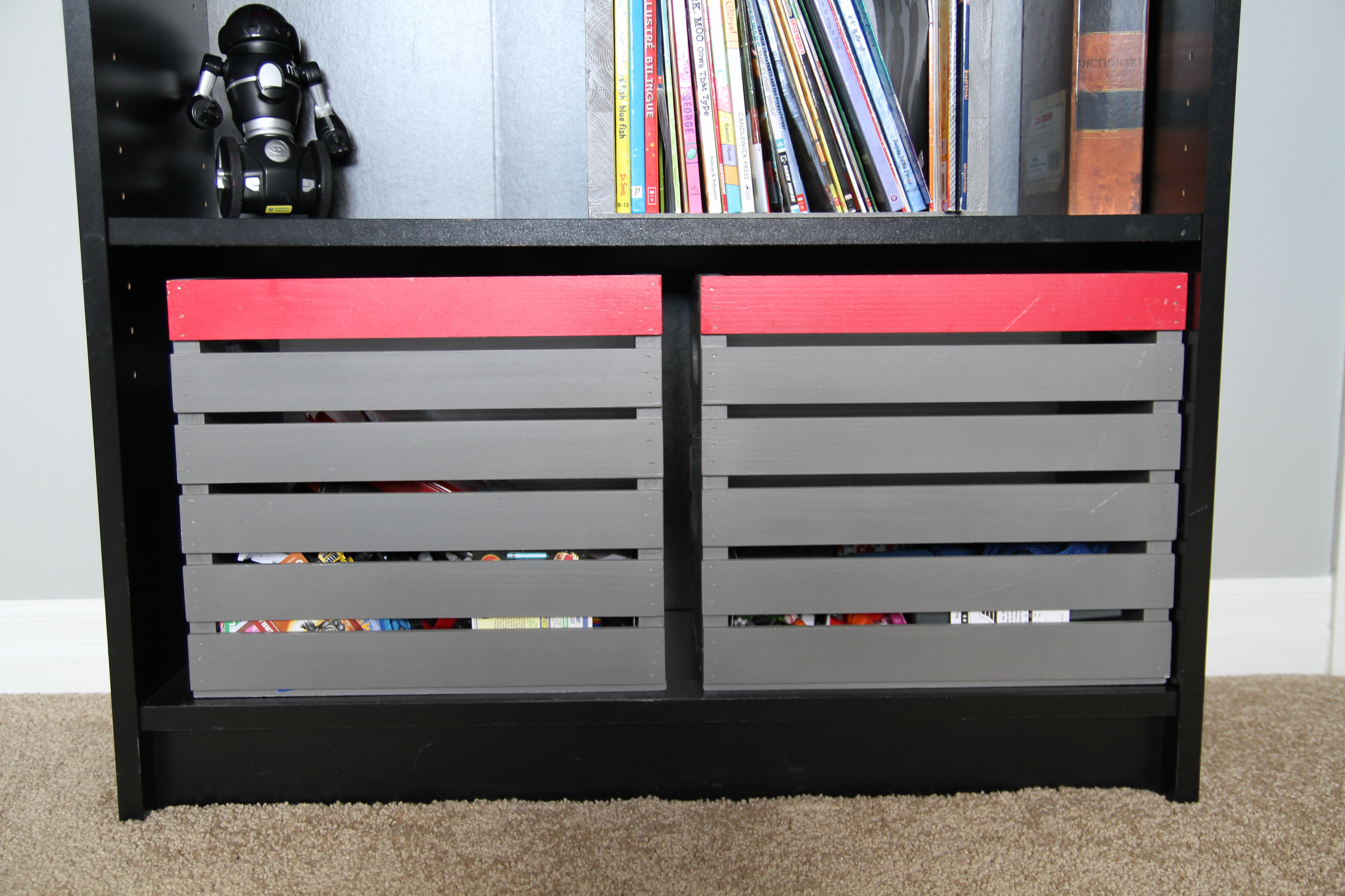 Pokemon cards, LEGO pieces, Star Wars characters, Beanie Boos, games, mini cars….the list goes on and on!!! These were the toys that my son would leave littered all over the floor every single day. And these were the toys that I would PICK UP every single day! They needed a home, so I decided to make one! I liked the look of crates and found a few options in local stores, but I could build the same thing for a fraction of the cost, so I did!