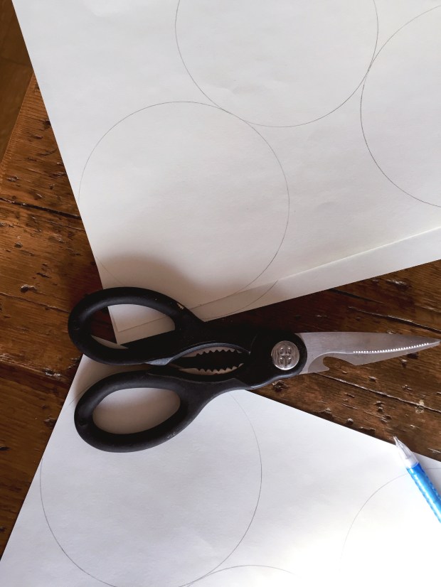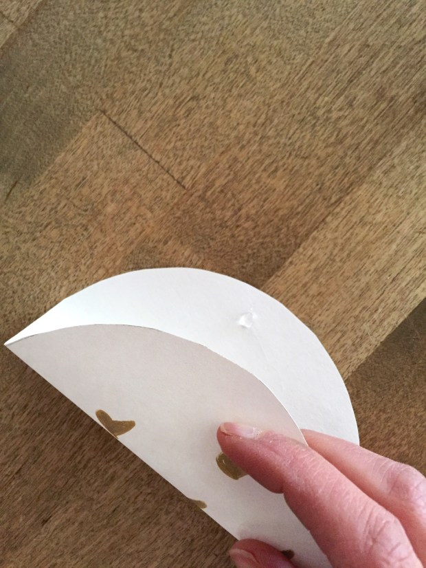 Start by tracing circles with your pencil and bowl on paper. Cut out the circles. If you’re using coloured paper (pink or red work well for this) you don’t need to decorate. I decided to use white paper and decorate my circles with small gold hearts that I coloured in myself.