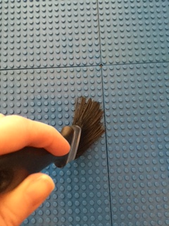 Tip: There are a couple of ways to go about cleaning this table. If there are no pieces of Lego on the table, I just use the vacuum cleaner. If there are Lego pieces to clean around, I use a paint brush. I buy cheap paint brushes from the dollar store just to use for dusting odd things (the banjo, heat vents, etc.).Spills are best cleaned up with a sponge that will get in between the tabs.