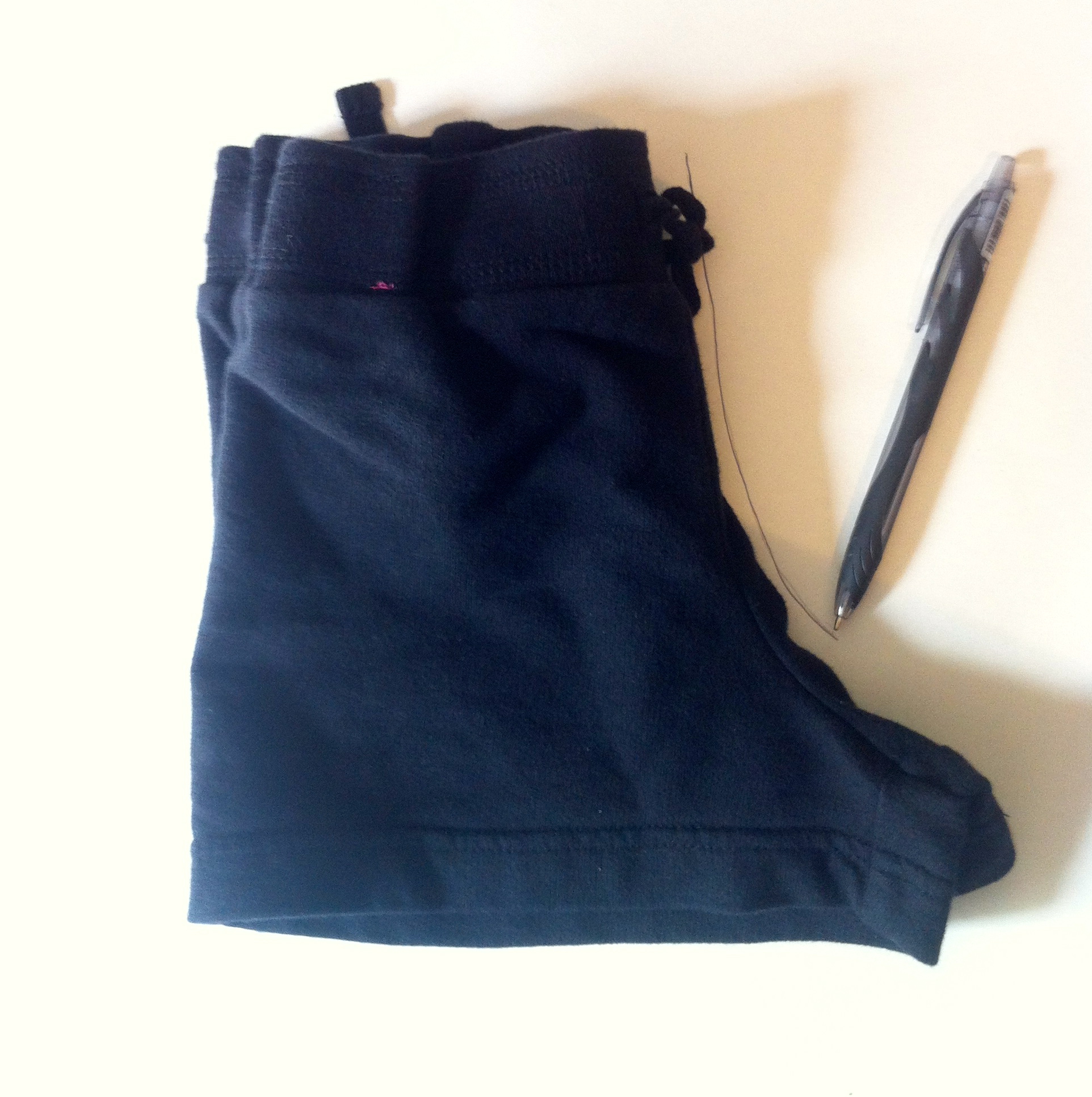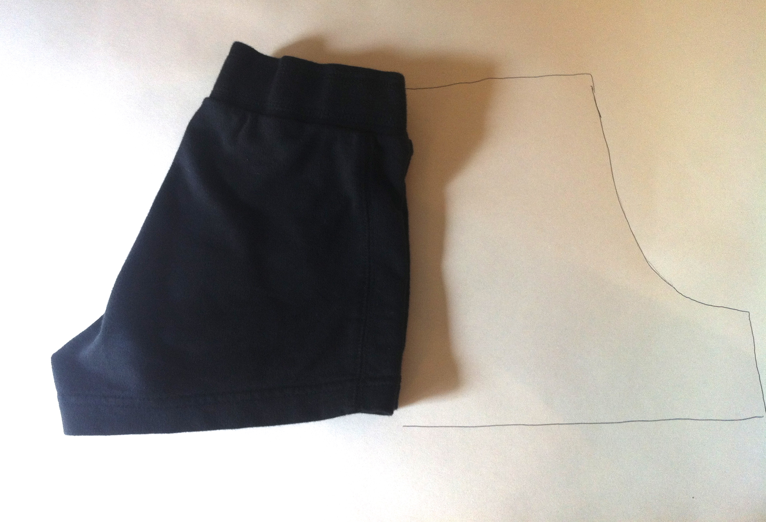 Despite being almost three years apart, both of my kids are about the same size, so I traced a pair of shorts that they already had in their cupboard, to become my pattern. I made the pattern in one piece in order to avoid sewing the side seams. This makes for a faster sew, and more comfy pair of pjs. Trace close to your existing shorts since you don’t need a lot of seam allowance with knits, and with this mini-tutorial you won’t even need to extend for a waistband, just trace the existing shorts exactly as they are.