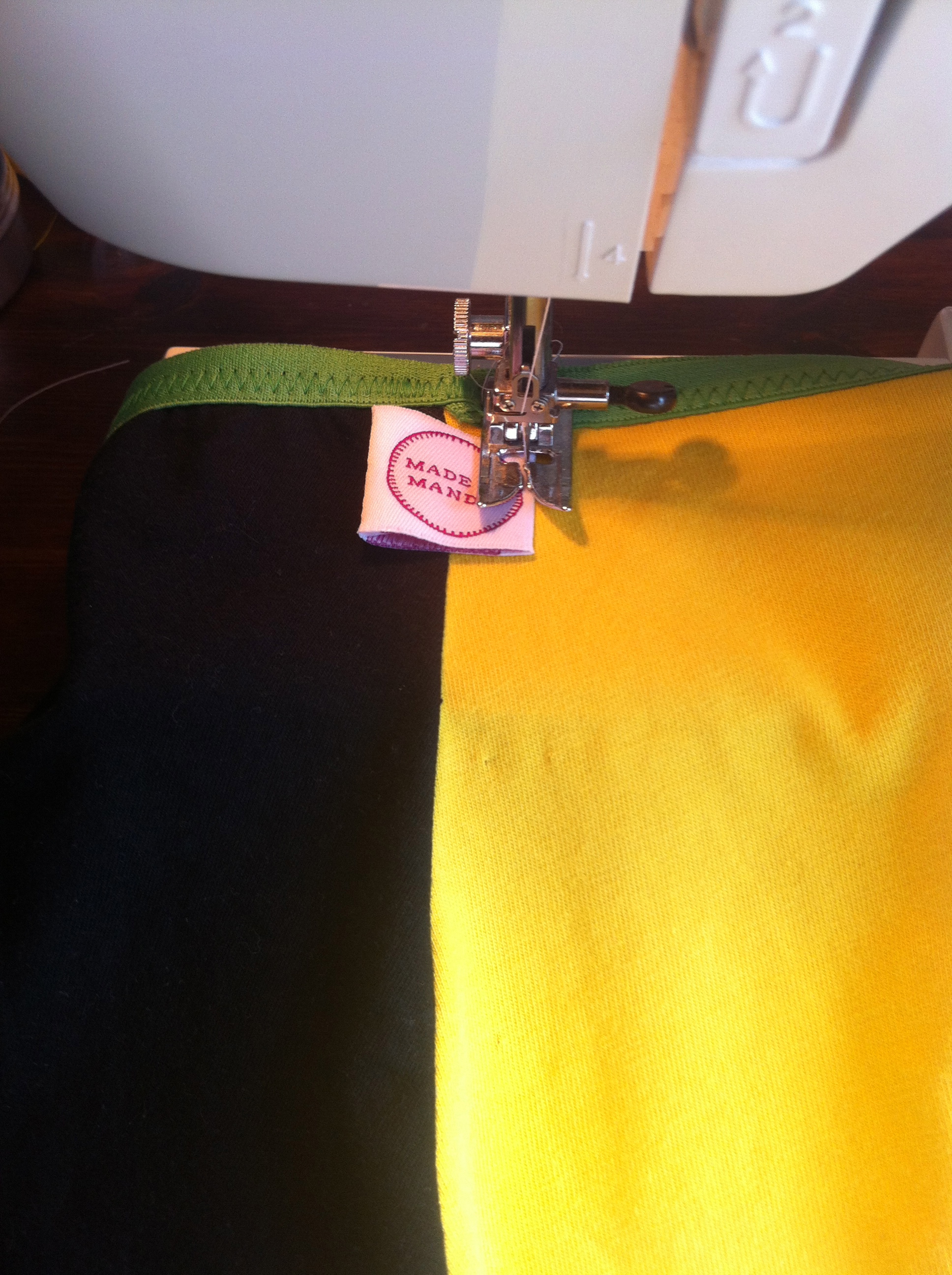 After you have cut your fabric out, sew your two curved side seams together with a 2/8 seam allowance. You can zig zag the edges if you like, but it isn’t necessary. Be sure to use a large stitch since you want the fabric to have a little give to it.