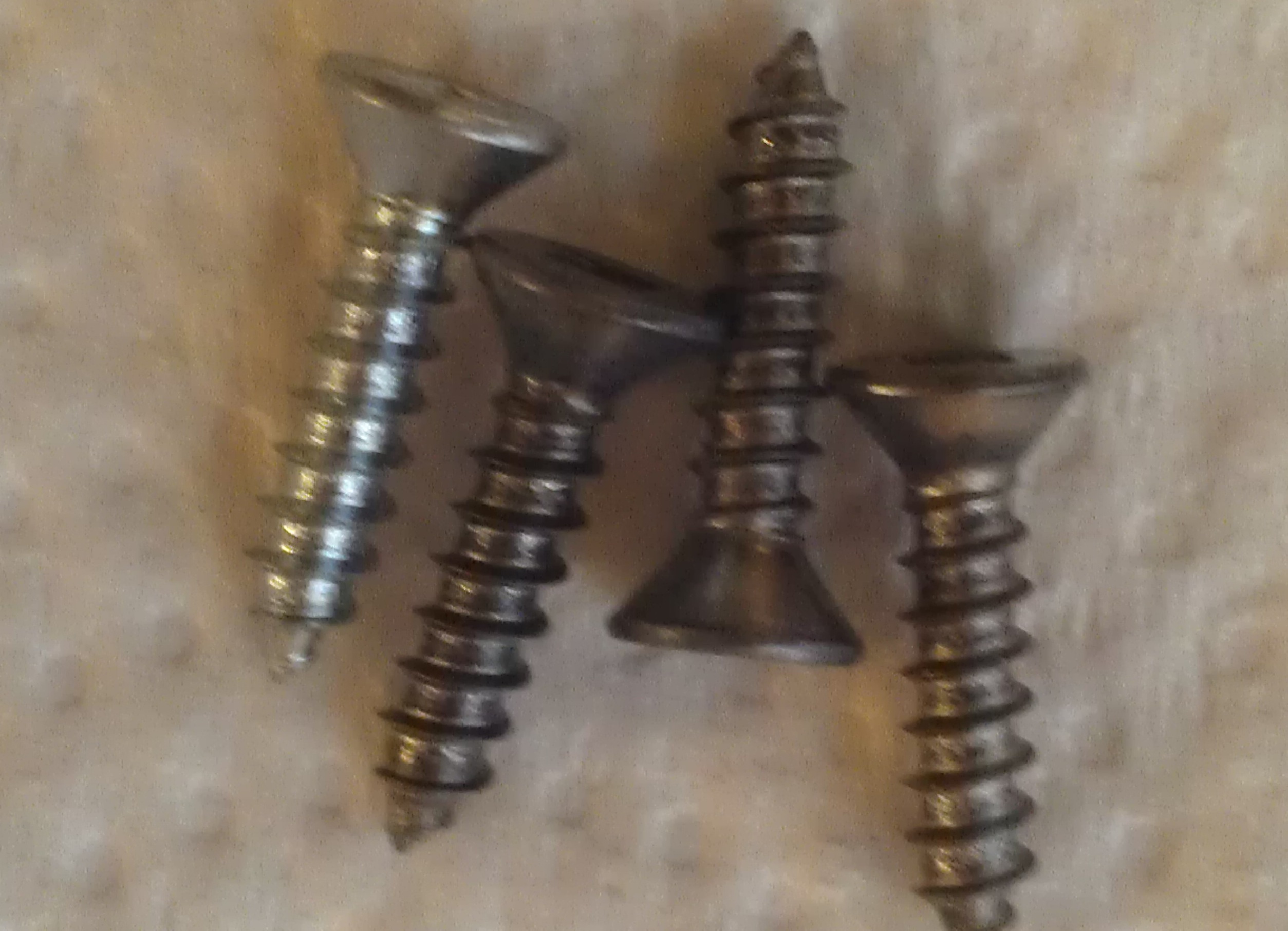6. Take a couple of screws and throw them in the bowl with a few more tarnished pennies.