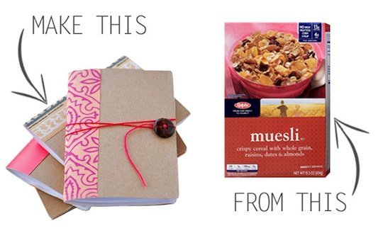 Here’s a really cool recycling idea – notebooks made out of cereal boxes! From Apartment Therapy.