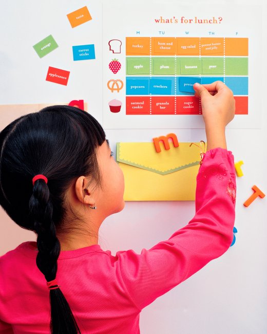 And, of course, Martha Stewart has a great selection of back to school crafts, including these cute notebook labels and a handy magnetic lunch chart.