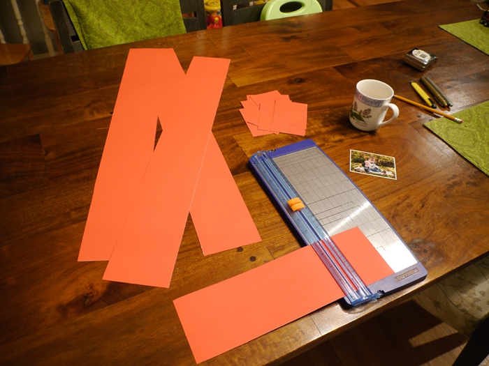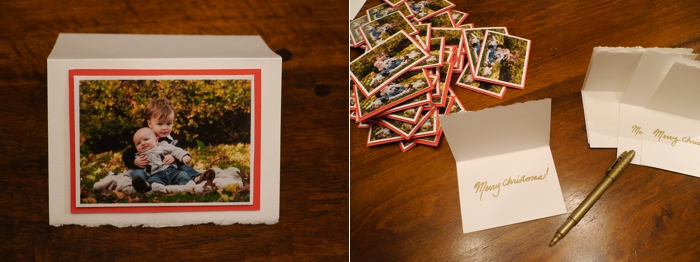Step 1: I used a measuring tape to estimate the size of photo I would need to fit on the front of my cards. I had the photos professionally printed and then used my paper cutter to trim each one, leaving a white border (I just eyeballed each cut).
