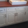 Working with a budget, we couldn’t really afford to pay thousands for a nice big cabinet with a modern counter-top. So I decided to re-work those fugly cabinets. My husband was sceptical, but I knew they had a future.