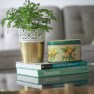 This DIY gold lace vase was not only easy and quick to do, but cost me less than $10. And hasn’t left my brass+glass coffee table (found at a salvage store for $25!) since I finished it…